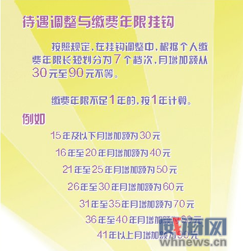 “今年调整与缴费年限挂钩,主要体现多缴多得。”市人社局相关负责人表示,从这次调整能看出,缴纳养老保险年限的多少,与将来退休享受的养老待遇有着直接的关系。因此,有部分参保人员认为缴满15年就可以不必再缴费了,这是一种误区。“从政策情况来看,如果缴费15年就不缴了,将来退休时个人的养老待遇水平会打折扣。”该负责人提醒说,企业职工应该根据个人情况,多缴多得。
